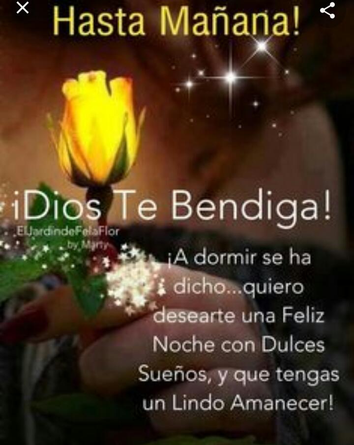 Buenas Noches que Dios te bemeiga Hasta mañana. Hasta mañana Dios los bendiga.